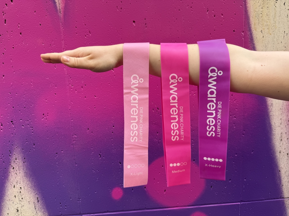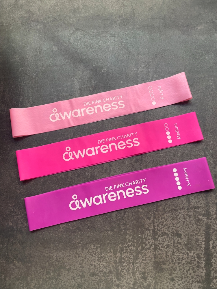 Mit dem Pink Fitnessbänder Set holst du dir dein effektives Workout ganz einfach nach Hause und unterstützt gleichzeitig eine wichtige Mission: mehr Aufmerksamkeit für Brustkrebs-Früherkennung.